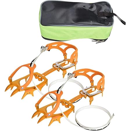 Amazon アイゼン アンチスリップスパイク 滑り止め 36 46サイズ 靴底取り付け型 抗摩耗 衝撃吸収性 耐低温性 高い耐歪み性 アイスクライミング スキークライミング 氷河ハイキング 14本歯付き オレンジ Alomejor アイゼン